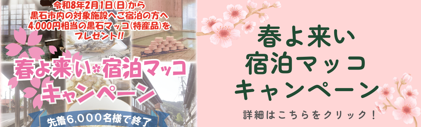 • 2月1日(日)~「春よ来い宿泊マッコキャンペーン」開催のお知らせ